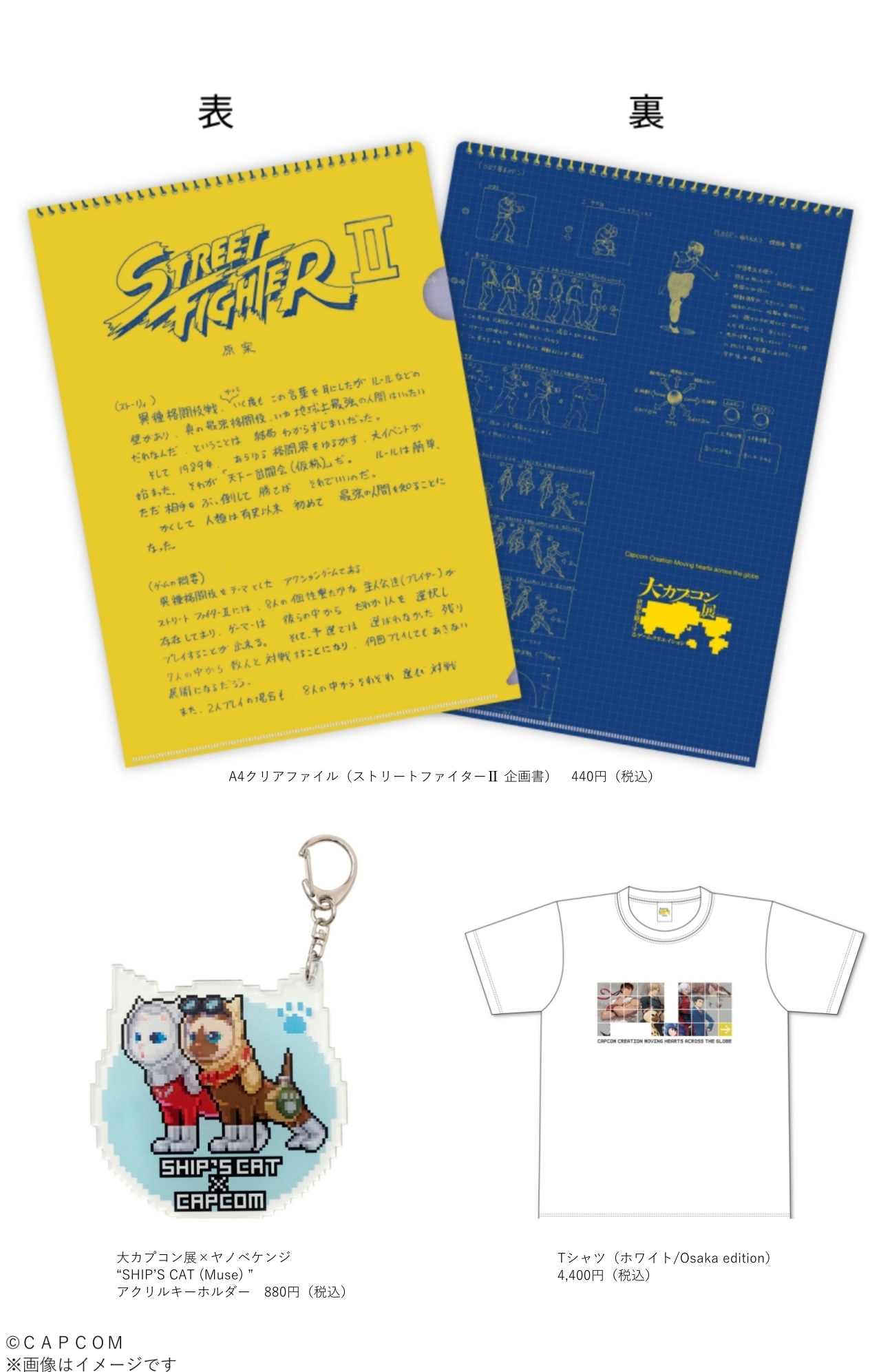 Exclusive merchandise will be available for purchase. Items include clear files designed with motifs from game planning documents and collectible Kewpie® dolls dressed as iconic Capcom characters. Furthermore, attendees will find goods unique to the Osaka venue, such as an acrylic keychain featuring an Airou character costumed as "SHIP’S CAT (Muse)"—a symbol of the Nakanoshima Museum of Art, Osaka—and T-shirts incorporating game characters within the museum’s distinctive symbol mark.