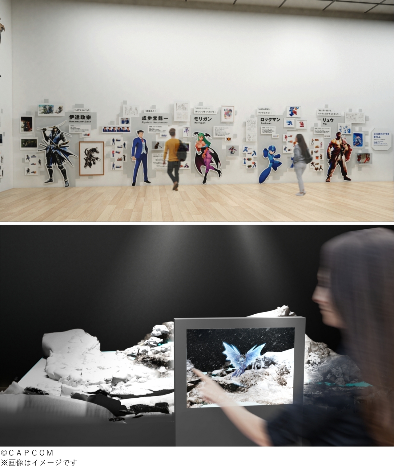 The exhibition features several distinct areas. In the "Characters" section, attendees can view development materials, such as illustrations and detailed setting images, for characters featured across Capcom’s major franchises. A highlight is the "Monster Hunter Super 3D Encyclopedia," an immersive experience that showcases the developers’ creativity in realistically rendering natural environments and the monsters adapted to them. This is achieved through a combination of projection mapping and augmented reality (AR) technology applied to detailed field models representing the world of Monster Hunter.